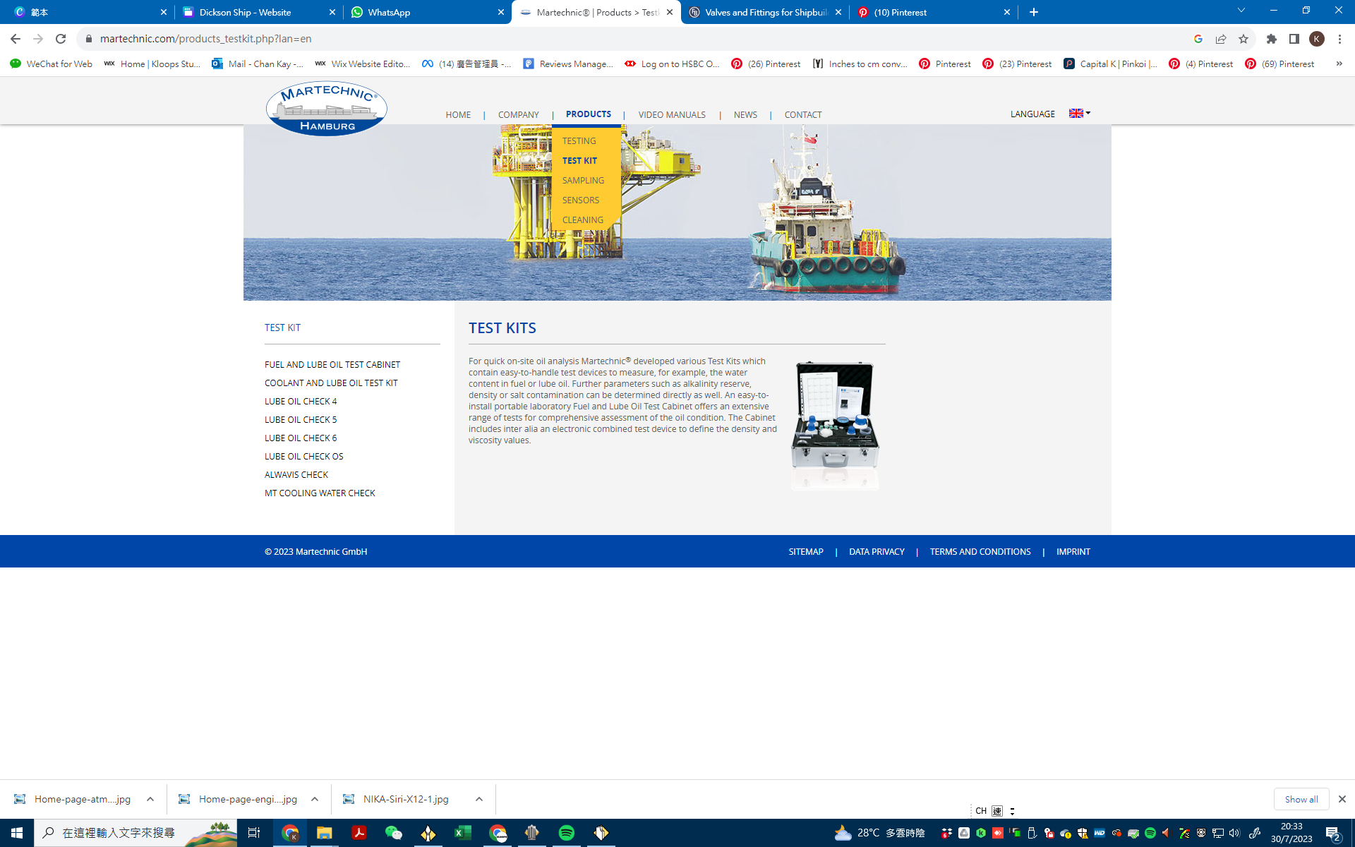 For quick on-site oil analysis Martechnic® developed various Test Kits which contain easy-to-handle test devices to measure, for example, the water content in fuel or lube oil. Further parameters such as alkalinity reserve, density or salt contamination can be determined directly as well. An easy-to-install portable laboratory Fuel and Lube Oil Test Cabinet offers an extensive range of tests for comprehensive assessment of the oil condition. The Cabinet includes inter alia an electronic combined test device to define the density and viscosity values.